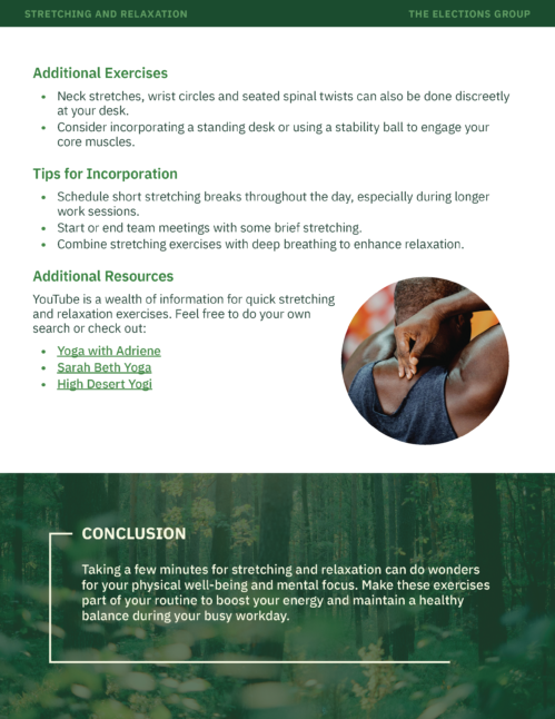 This “in a box” series on wellness is designed to empower election officials with practical tools and resources for maintaining well-being amidst the challenges of their roles. Each one-page document offers quick exercises, tips and resources to promote self-care, build resilience, and manage stress during busy work days.