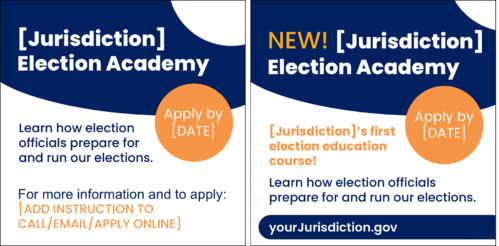Update the text for your jurisdiction’s election academy, place on your letterhead and distribute to announce your new course.